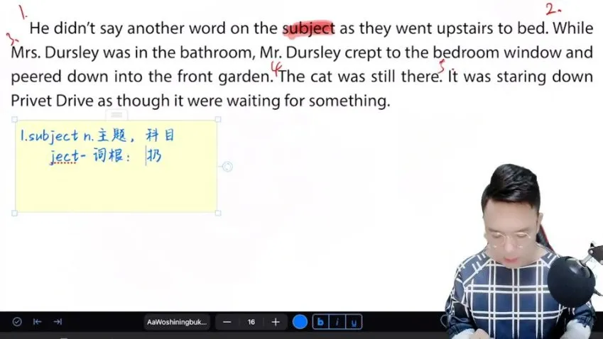 通过《哈利波特与魔法石》原著精读提升英语能力!本课程逐章解析经典场景,从"大难不死的男孩"到"魁地奇比赛",涵盖词汇、语法、文化背景。勇哥老师带你深入分析邓布利多登场、九又四分之三站台奇遇、分院帽仪式等名场面,学习地道表达。适合想通过兴趣学英语的成人,视频讲解+原著精读,轻松掌握3000+高频词汇,提升阅读速度,了解英式幽默与文化典故。跟随哈利波特开启魔法英语之旅!...