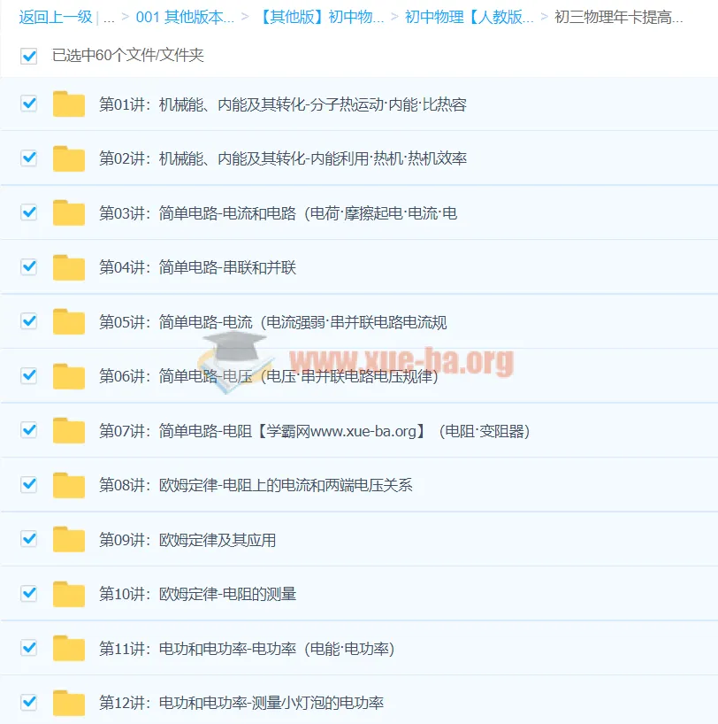 初中物理名师合集课程杜春雨【39796】新初三物理年卡提高班(全国人教版)【60讲杜春雨】-百度网盘资源下载地址由网盘用户[lan****ke3]分享,包含pdf,mp4,PDF等格式共计274个文件,文件大小为8.44GB,分享时间2025-06-29,此百度网盘资源由来客盘网盘搜索引擎收集整理。...