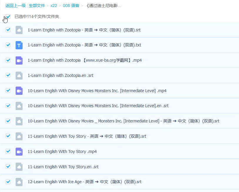 《通过迪士尼电影学习英语》外教精讲课高清中、英双字幕7.47GB