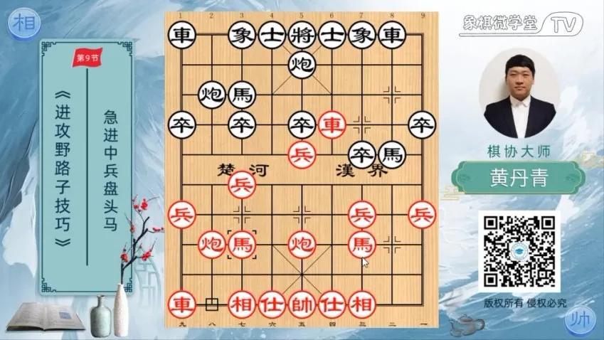 本套教程由象棋名师黄丹青精心打造,包含13套系统化课程,涵盖布局一点通(46课)、残局一点通(59课)、中局战术(屏风马/顺炮/列炮共135课)、五六炮攻杀技巧等核心内容。特别收录后手布局韬略、屏风马克制盘头马等进阶技法,配合43课时基本功训练,帮助学员系统掌握开局定式、中局搏杀、残局决胜全流程。附赠实战飞刀技巧,适合从入门到进阶的象棋爱好者全面提升棋艺水平。...