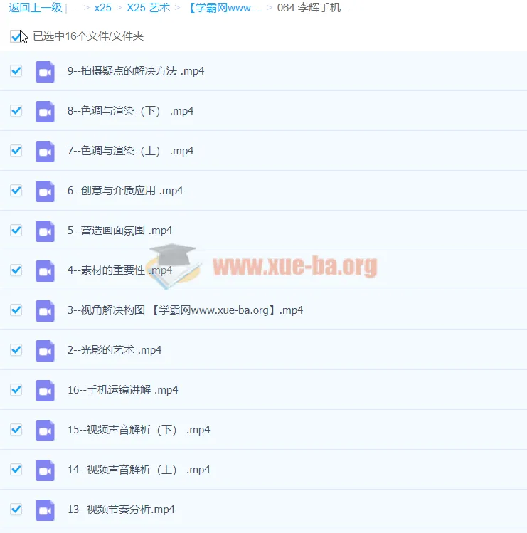 064.李辉手机视频拍摄美学课:从0基础开启用一部手机完成视频创作16.11GB
