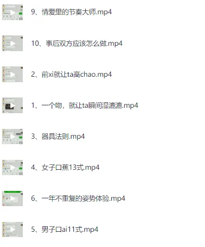 X AI 大师私教课 10节课将你训练成qing爱大师,主讲人:sharon,情感专家,美女研究生上线直播,化身X AI大师,让ta享受不一样的高c,资源下载。 ├── 1、一个吻,就让ta瞬间湿漉漉.mp4 ├── 2、前xi就让ta高chao.mp4 ├── 3、器具法则.mp4 ├── 4、女子口蕉13式.mp4 ├── 5、男子口ai11式.mp4 ├── 6、一年不重复的姿势体验.mp4 ├── 7、金shou指技巧.mp4 ├── 8、不同场景的体验.mp4 ├── 9、情爱里的节奏大师.mp4 ├── 10、事后双方应该怎么做.mp4 ├── 89C86913CA036A1F91…...