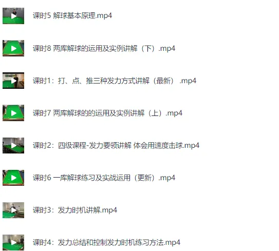 台球专业班付费教程 1-4级(入门 基础 高级 进阶), 资源下载。