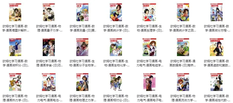 半导体、电池、电气、数学、电子、电路、分子、生物学、量子力学、流体力学、密码、热力学等漫画电学原理,总计31册,非常棒,喜欢的可以转存到自己的网盘里好好学习~~