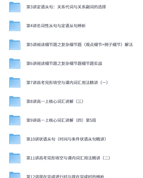 60课时学完高中英语课程,这套“60课时学完高中全部英语”课程覆盖高一至高二阶段的核心知识与应试技巧,分为上、下两册共60讲。上册包含40讲,聚焦基础语法、词汇积累与完形填空、阅读细节题实战;下册包含20讲,聚焦高阶语法、专题阅读与高考经典题型演练。课程设计以高考英语提分为导向,讲解与练习紧密结合,帮助学员在短期内掌握重难点,为后续学习奠定坚实基础。