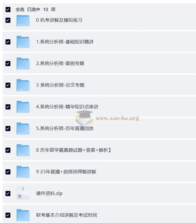 2024软考高级系统分析师VIP套餐课程,课程资源。软考高级系统分析师VIP套餐汇集了从基础到冲刺的全流程备考资源,为考生提供系统化学习与实战演练的双重支持。官方机考绘图指南由乐凯出版,帮助掌握核心题型的绘图标准;机考讲解与模拟练习覆盖真实考试场景,增强实战经验。基础知识精讲针对考试大纲,打牢学科根基;案例专题与论文专题分别提升分析能力和写作水平;精华知识点串讲则梳理高频考点,实现知识快速回顾。 ├── 0 机考讲解及模拟练习 ├── 1.系统分析师-基础知识精讲 ├── 2.系统分析师-案例专题 ├── 3 系统分析师-论文专题 ├── 4.系统分析师-精华知识点串讲 ├── 5.系统分析师…...
