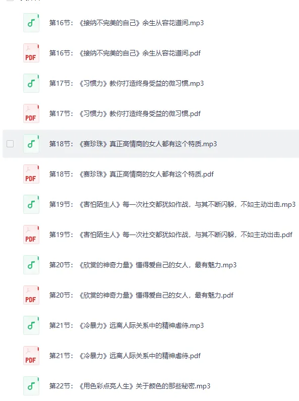 40部女神书单,读书的女人不怕老(完结)【PDF/MP3】【1.3GB】-夸克网盘资源下载地址由网盘用户[夸父*765]分享,包含mp3,pdf等格式共计80个文件,文件大小为1.25GB,分享时间2025-09-12,此夸克网盘资源由来客盘网盘搜索引擎收集整理。...