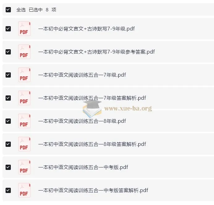 一本初中语文阅读训练五合一8年级.pdf248.4MB