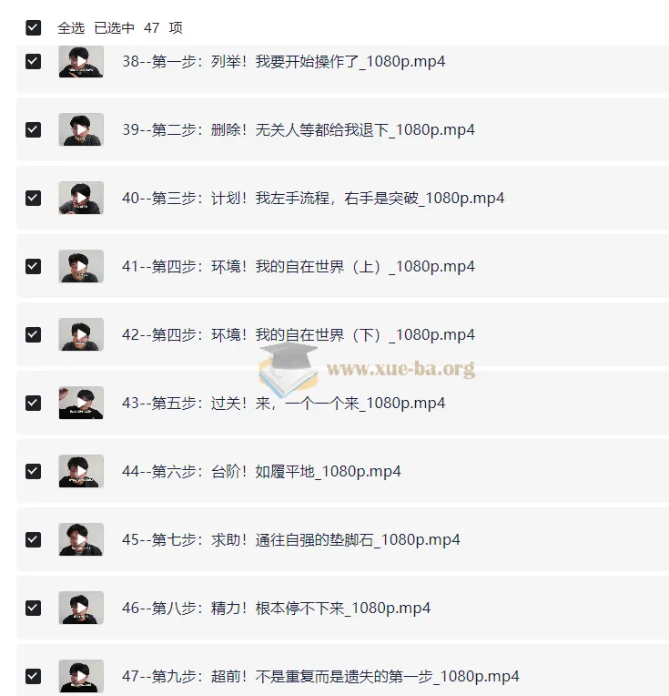 小学初中高中生以及家长必读[高效学习之路 47节课][Mp4][24GB]-夸克网盘资源下载地址由网盘用户[枫*]分享,包含mp4等格式共计47个文件,文件大小为23.96GB,分享时间2025-11-05,此夸克网盘资源由来客盘网盘搜索引擎收集整理。...