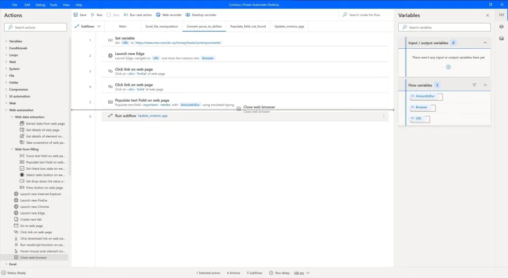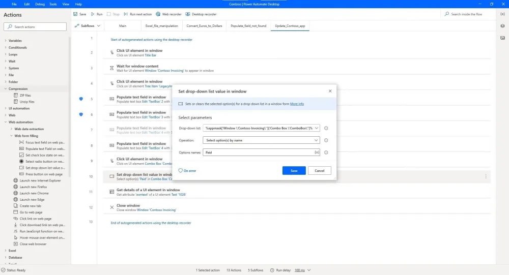 2、在单一流中录制桌面和 Web 操作:使用桌面和 Web 记录器构建流,同时跨 Web 或桌面实时编辑所录制的操作。