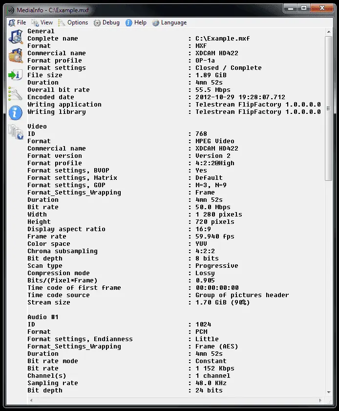 MediaInfo 数据显示包括