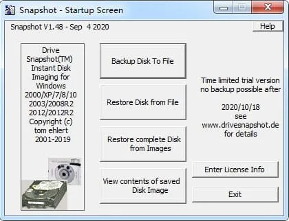 Drive SnapShot,小巧强大的系统热备份利器,德国硬盘备份还原工具。支持磁盘卷热备份还原、差异备份, 增量备份, 异机还原, 远程备份, RAID磁盘阵列, 挂载映像文件映射虚拟驱动器, 生成哈希文件, 命令行操作等,备份速度快,备份的镜像文件体积较小。软件短小精悍,无注册表和临时文件,原生绿色单执行文件。